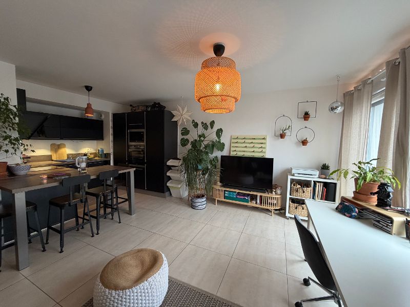 **Hettange-Grande centre**Très bel appartement 3 pièces de 62.94 m² situé au 2ème étage d'une petite copropriété récente à proximité de la gare SNCF. Il comprend une entrée, une cuisine équipée, un salon donnant accès à un balcon, deux chambres, une salle de bains avec douche et baignoire, un WC, un cellier, une place de parking extérieur.