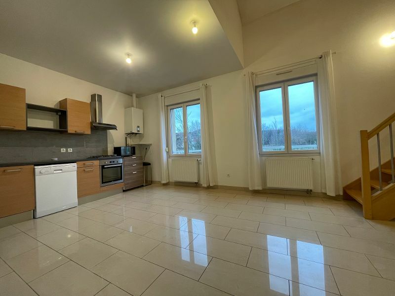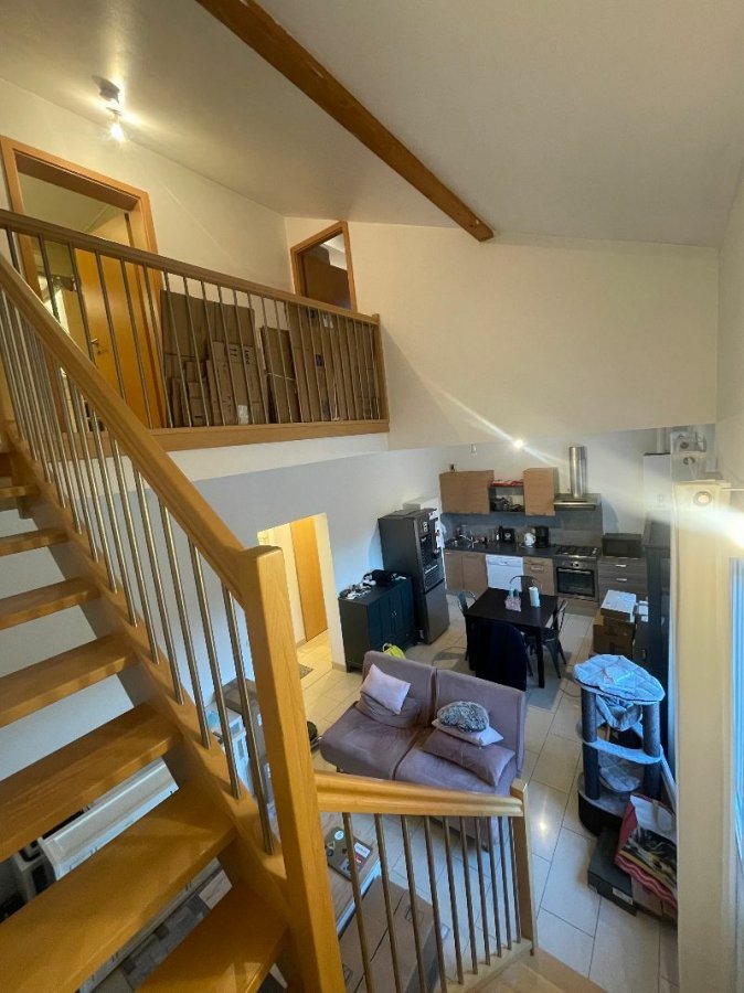 Location Thionville Metzange: situé au 1 er étage - Appartement F3 en duplex de 66.58 M² comprenant:- au premier niveau : une entrée, une cuisine équipée ouverte sur salon, un wc